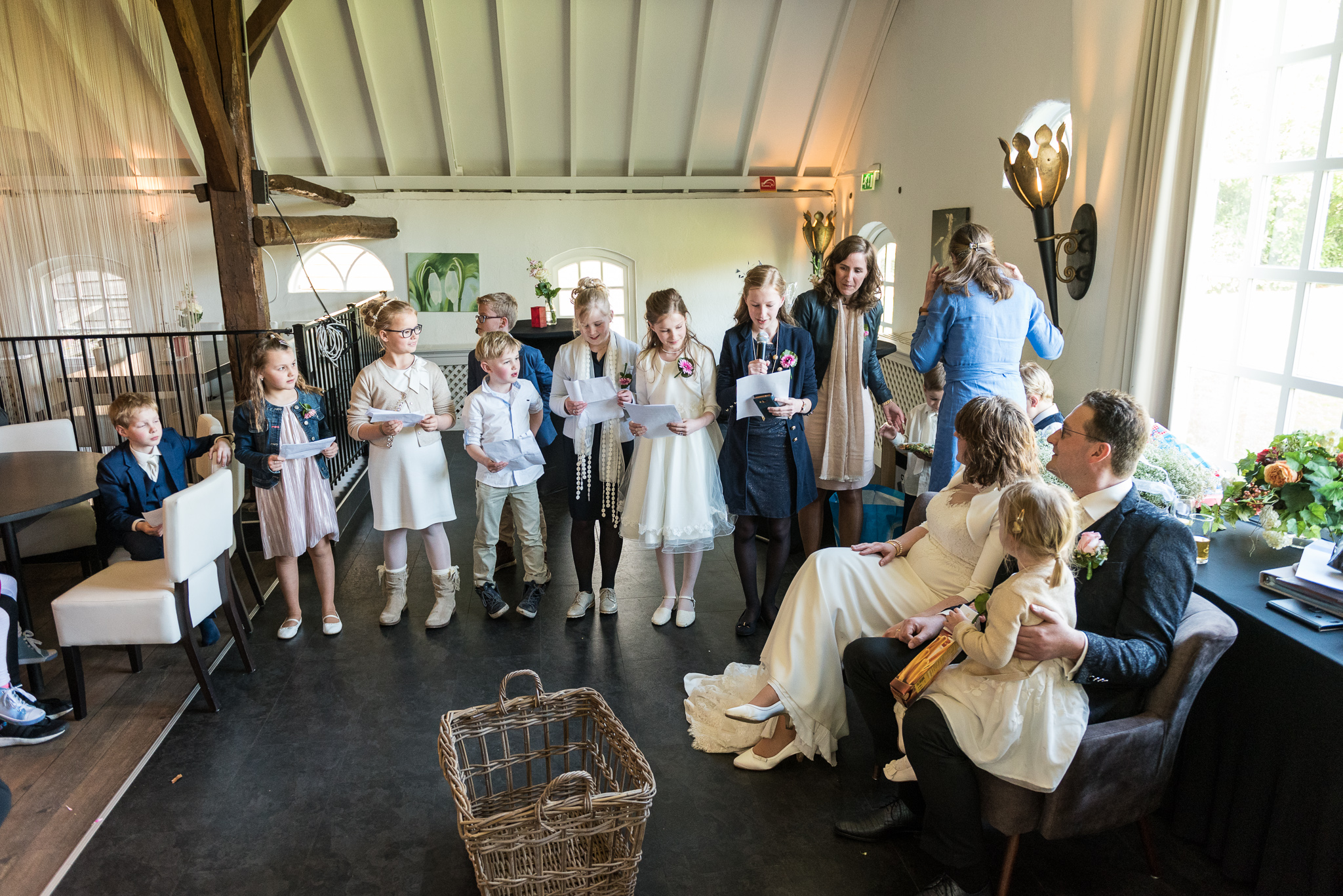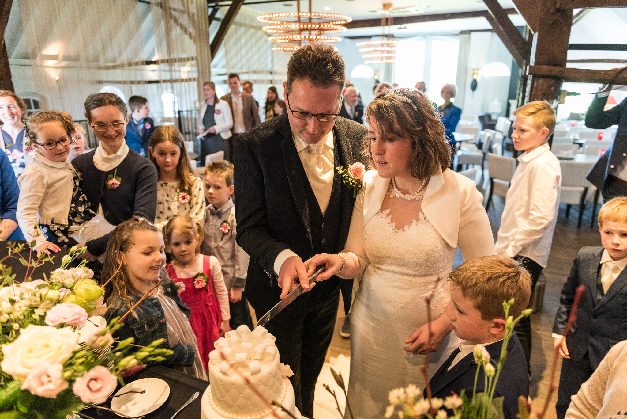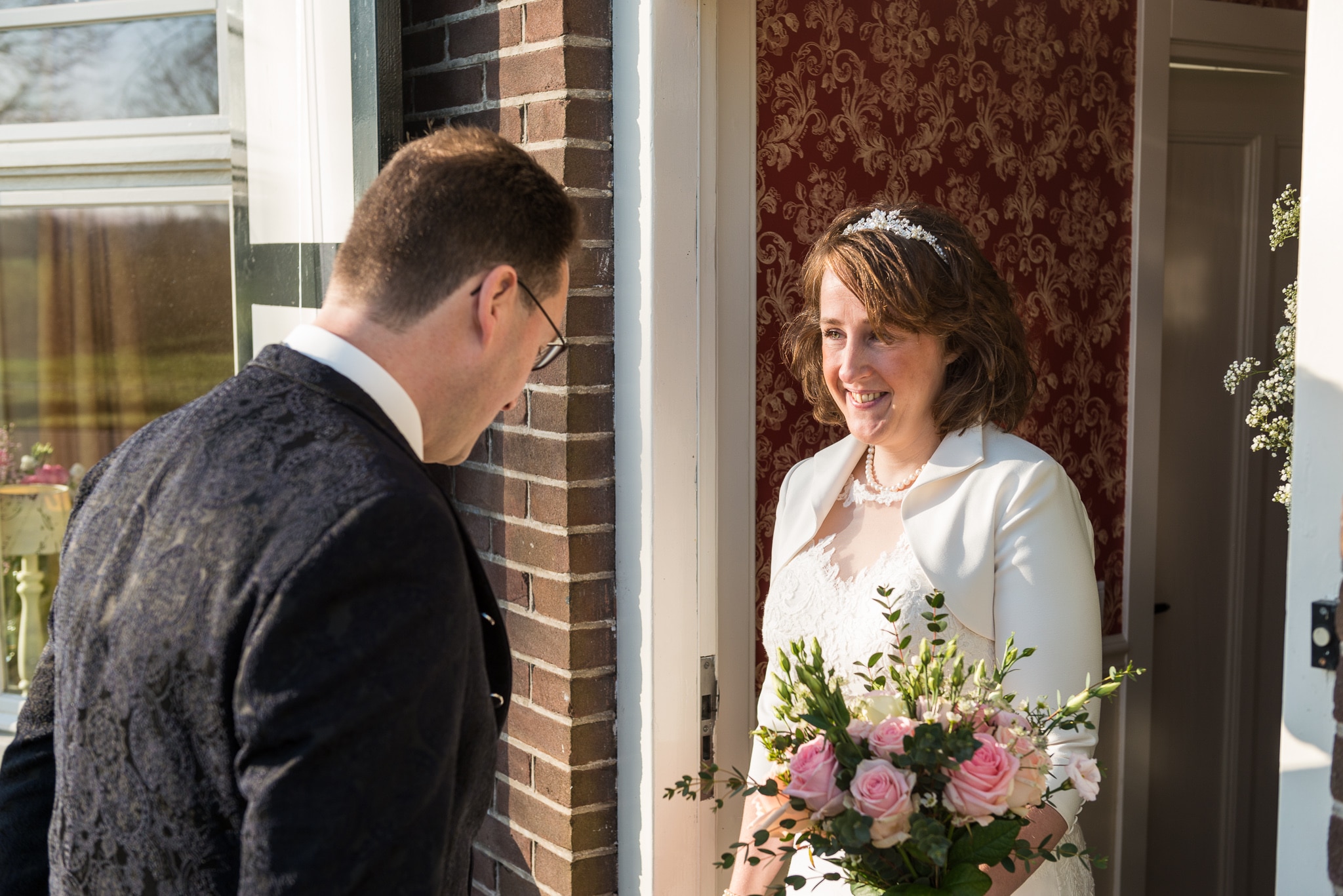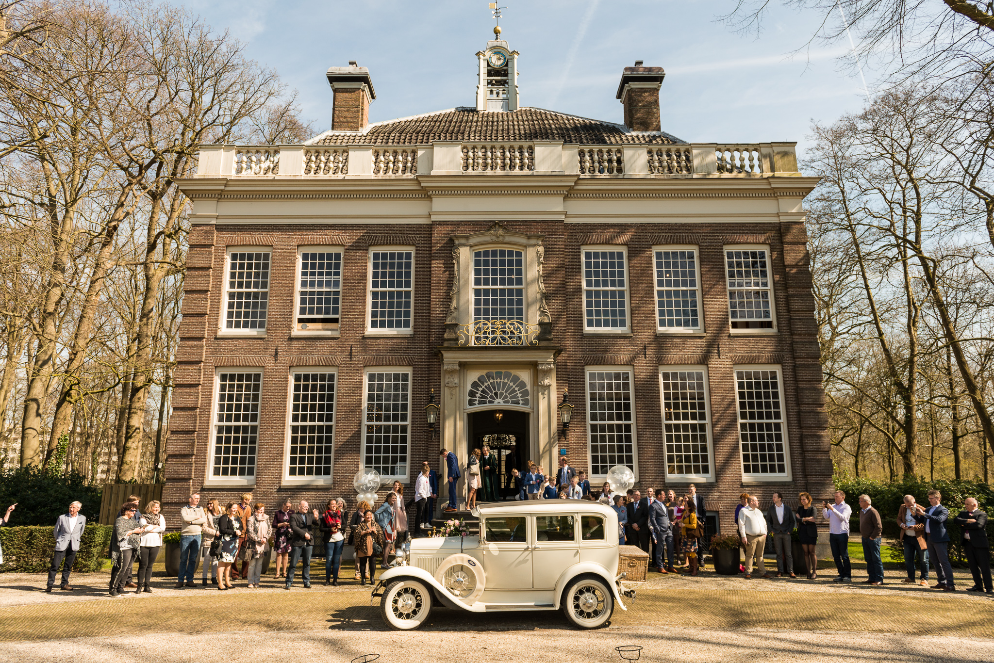 De dag begon naast de ouderlijke boerderij van Jantine met haar voorbereidingen. Herman kwam haar even later daar ophalen en in hun schitterende trouwauto reden we naar de Buitenplaats Amerongen om de fotoreportage te maken. Na de lunch was het tijd om naar het nabijgelegen Buitenplaats Sparrendaal in Driebergen te gaan voor de voltrekking van het wettelijk huwelijk. In de mooi aangeklede trouwzaal en met applaus van al hun gasten gebeurde dat. Wandelend in het zonnetje ging de groep naar de nabij gelegen Grote Kerk van Driebergen voor het kerkelijk huwelijk. Daarna reden we naar de Veenderhoeve in Veenendaal voor de receptie en het diner. Een geslaagde eerste bruiloft van het jaar, een veelbelovende start van het jaar!