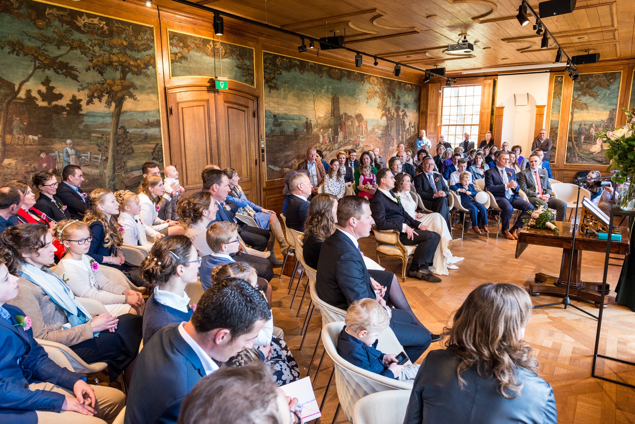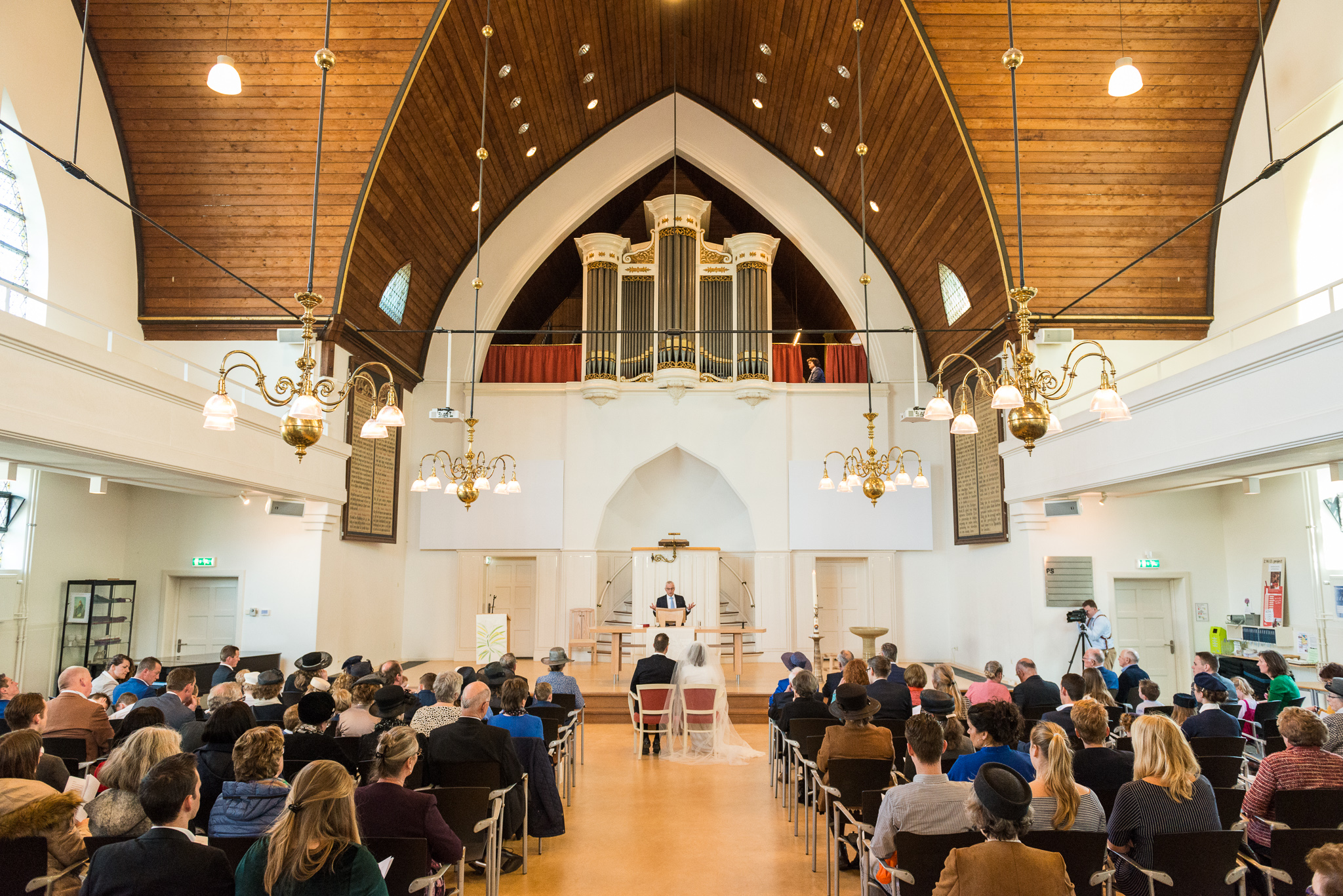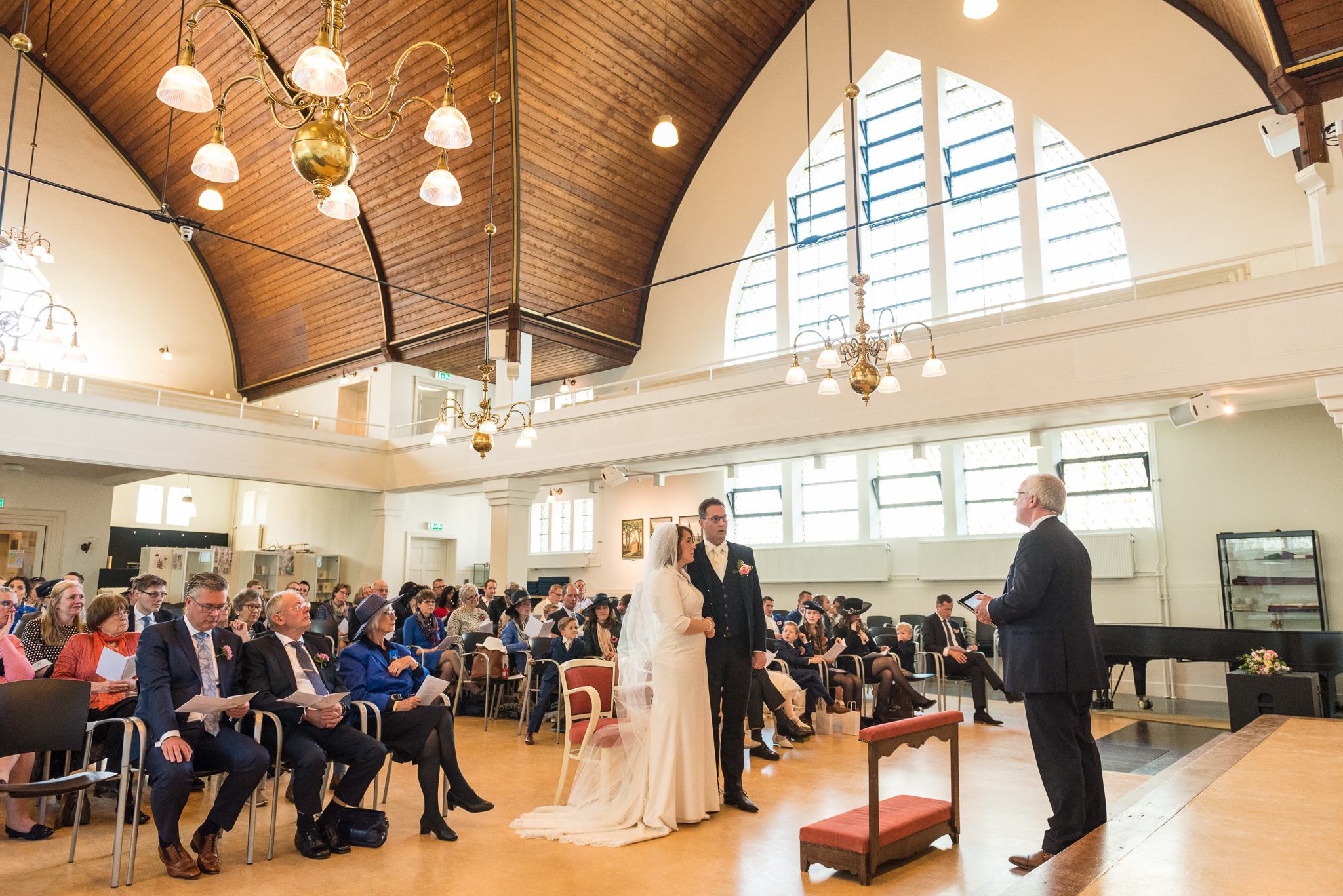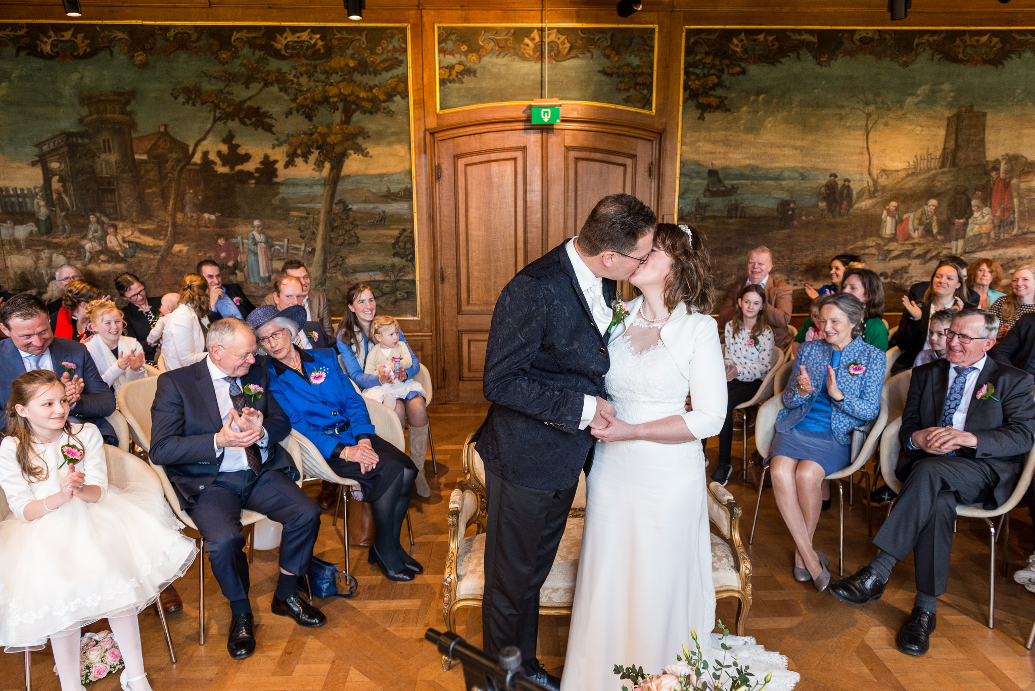 De dag begon naast de ouderlijke boerderij van Jantine met haar voorbereidingen. Herman kwam haar even later daar ophalen en in hun schitterende trouwauto reden we naar de Buitenplaats Amerongen om de fotoreportage te maken. Na de lunch was het tijd om naar het nabijgelegen Buitenplaats Sparrendaal in Driebergen te gaan voor de voltrekking van het wettelijk huwelijk. In de mooi aangeklede trouwzaal en met applaus van al hun gasten gebeurde dat. Wandelend in het zonnetje ging de groep naar de nabij gelegen Grote Kerk van Driebergen voor het kerkelijk huwelijk. Daarna reden we naar de Veenderhoeve in Veenendaal voor de receptie en het diner. Een geslaagde eerste bruiloft van het jaar, een veelbelovende start van het jaar!