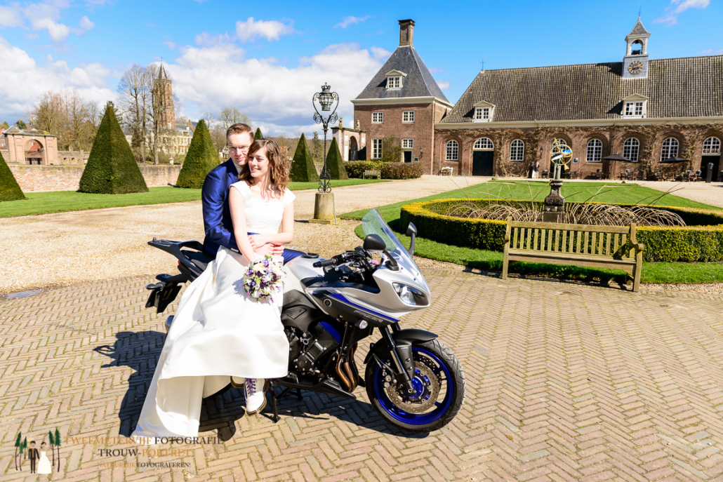 Met het huwelijk van Marloes en Caspar mocht ik begin april het trouwseizoen openen! Op de prachtige Buitenplaats Amerongen vond hun dag plaats, op hun motoren kwamen ze daar naartoe rijden waarna ze zich gingen omkleden. Na de aansluitende fotoshoot in de tuin vond de ceremonie in de intieme orangerie plaats en was het daarna tijd om in het zonnetje te genieten van bubbels en heerlijke trouwtaart. Het diner vond plaats in de sfeervolle voormalige hooizolder van het Poortgebouw. Na het diner kwamen de avondgasten en kwam voor mij vrij snel het moment van vertrek. Een heerlijke dag op een heerlijke locatie!