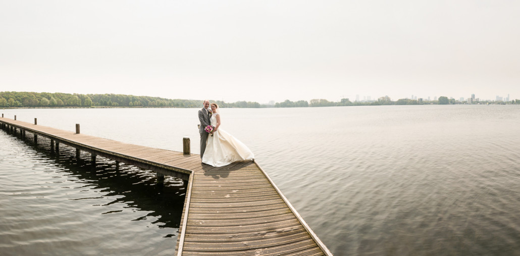 De bruiloft van Eveliene en Steven ging plaatsvinden in Rotterdam en ze hadden prachtige locaties gevonden daarvoor! De foto’s wilden ze graag nemen bij de Kralingse Plas waar je een schitterend uitzicht over de stad hebt en bij een klein landgoed dat vlak bij hun schitterende maar vrij onbekende trouwlocatie lag genaamd Kuyls Fundatie.