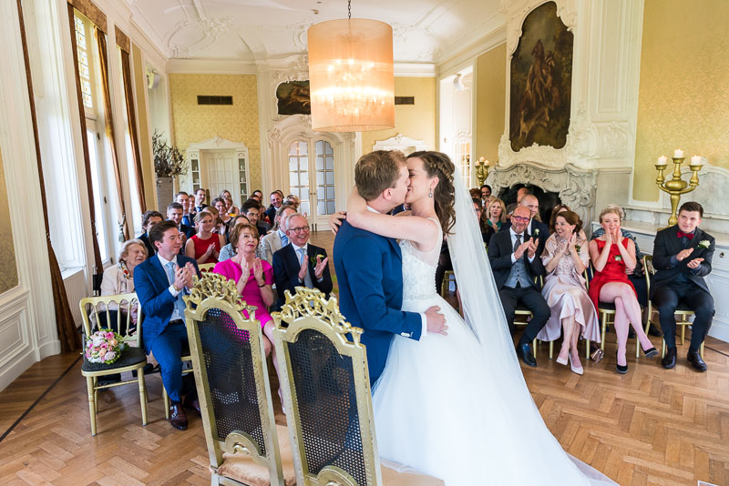 Het Kasteel De Hooge Vuursche is een prestigieuze trouwlocatie in de regio Utrecht. Het biedt een stijlvolle, sjieke en licht klassieke sfeer met moderne details en is in een rustige en groene omgeving gelegen. Wanneer je het landgoed op komt rijden van het kasteel zie het direct mooi leggen, aan het einde van de vijvers ligt het kasteel. Het heeft echter helemaal niet de uitstraling van een kasteel maar meer van een landhuis. Het kasteel heeft 19 hotelkamers die natuurlijk hartstikke fijn zijn voor jullie gasten die van verder weg komen of ‘s avonds niet meer willen reizen.